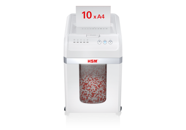 W pełni automatyczna niszczarka dokumentów gwarantuje bezproblemową ochronę danych. Wystarczy włożyć plik dokumentów, zamknąć pokrywę, a urządzenie resztę zrobi automatycznie.